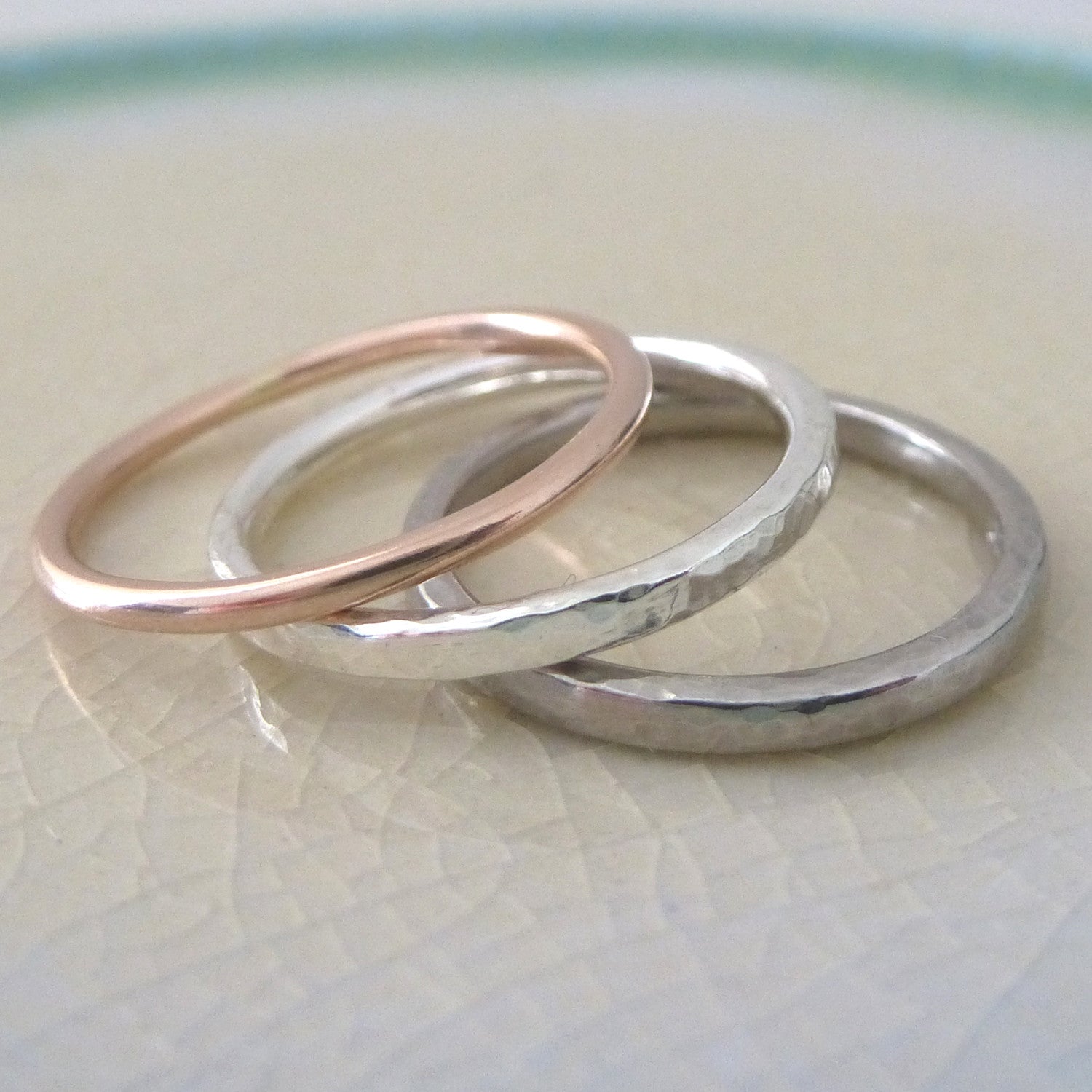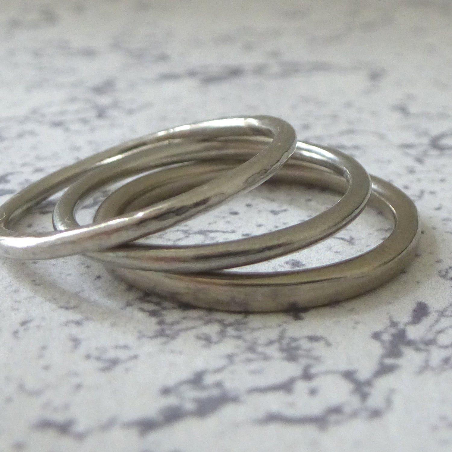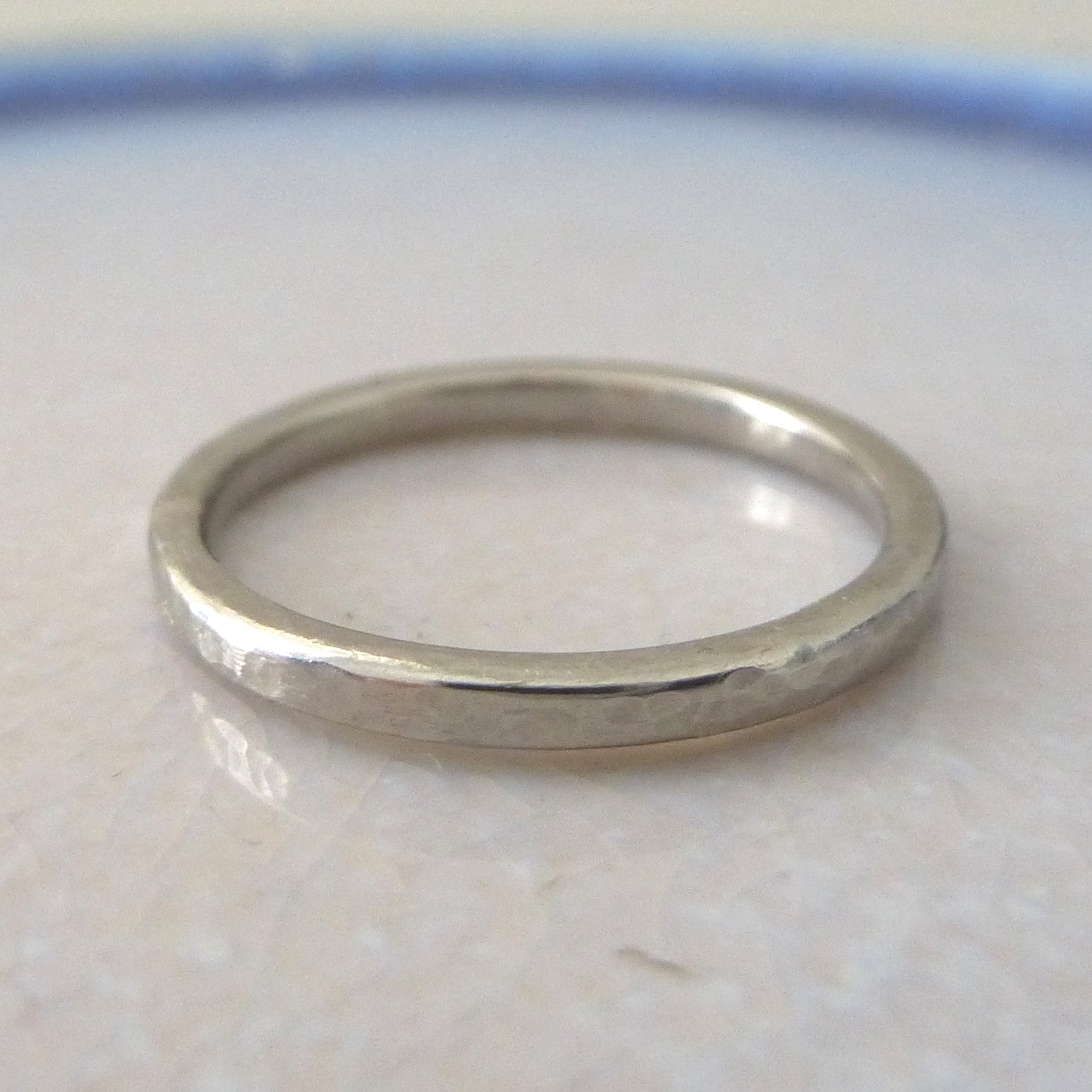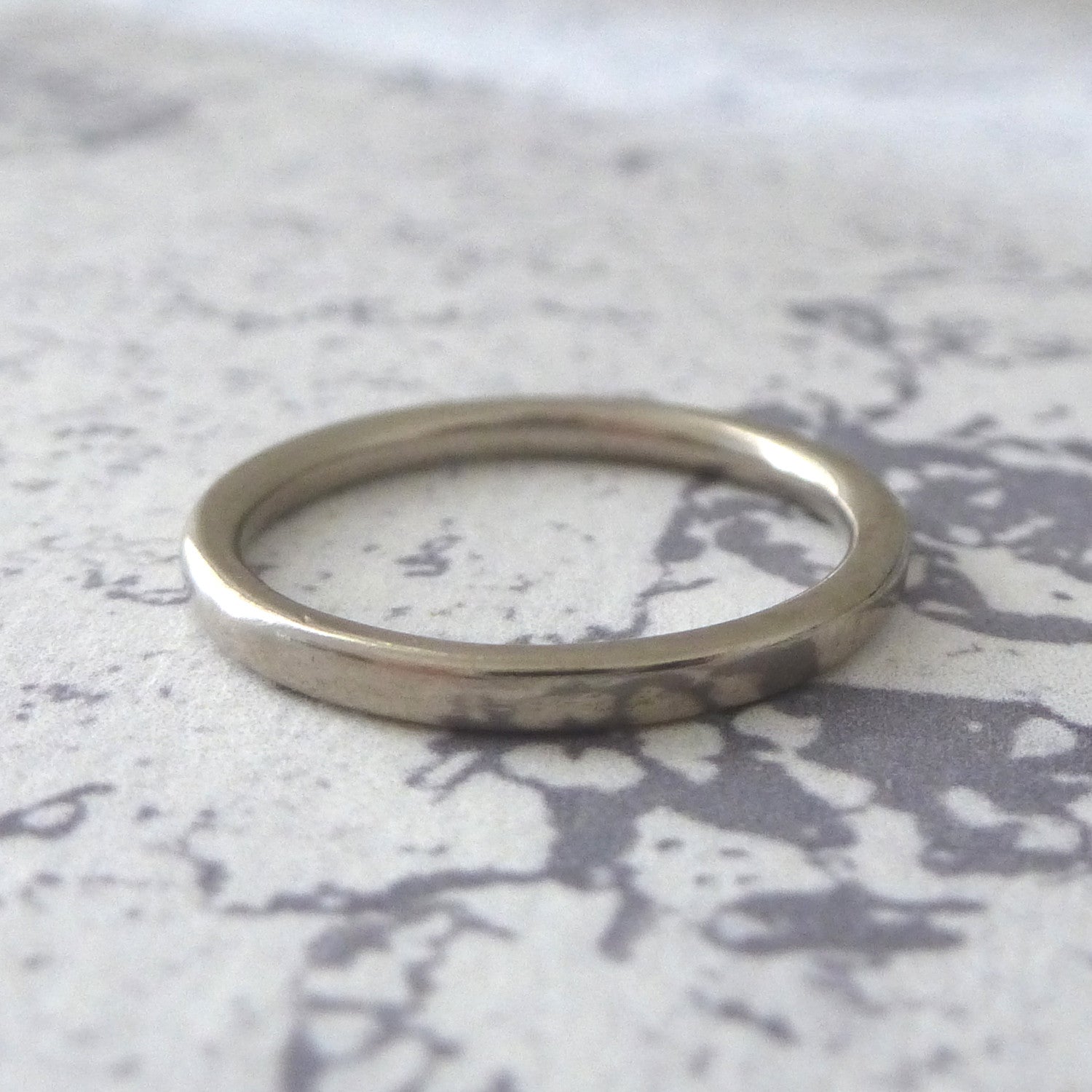 18ct White Gold Ring - 2mm - Hammered or Smooth