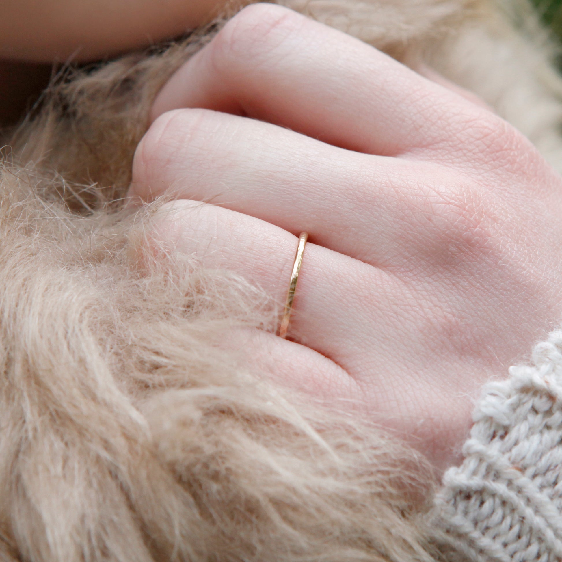A slim, solid 9ct rose, white or yellow gold ring. These rings are simple yet really elegant, and perfect for combining with others. Stack up different textures and metals to create your own combination.