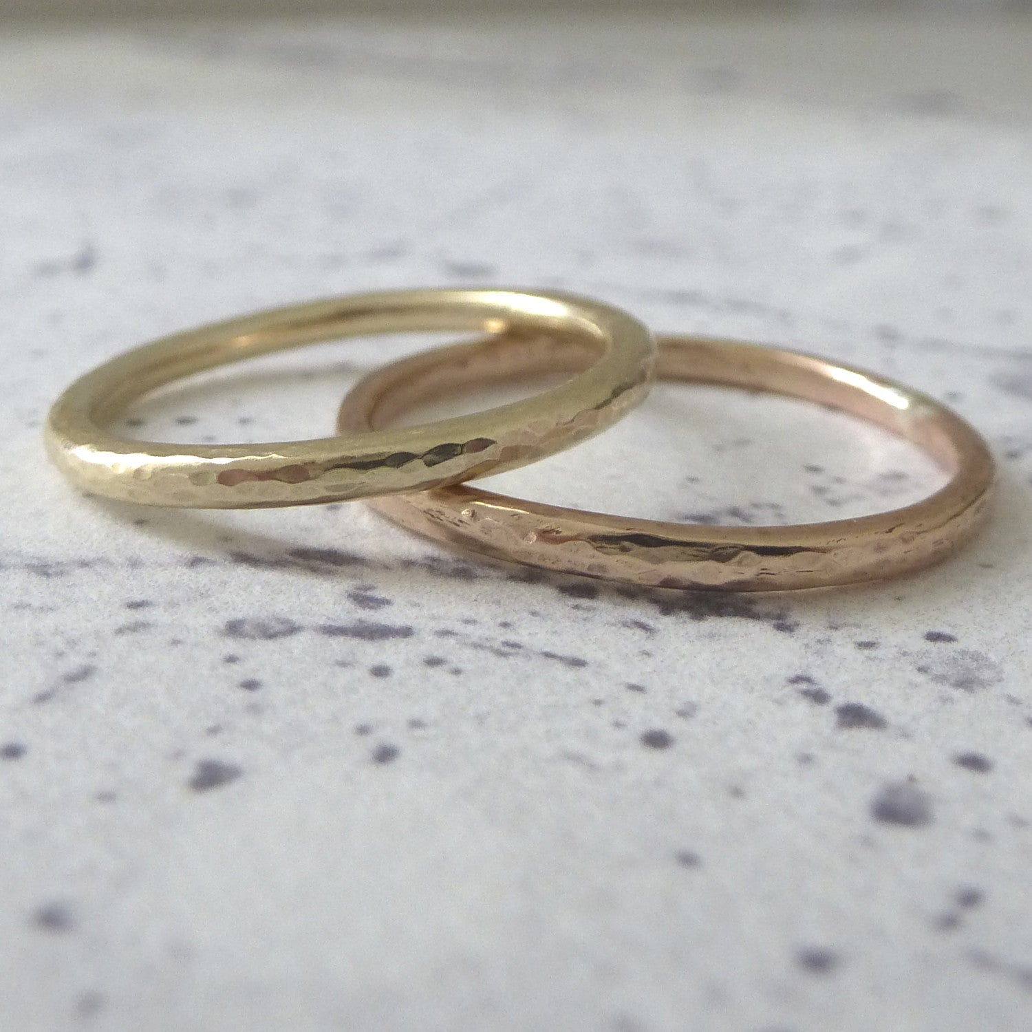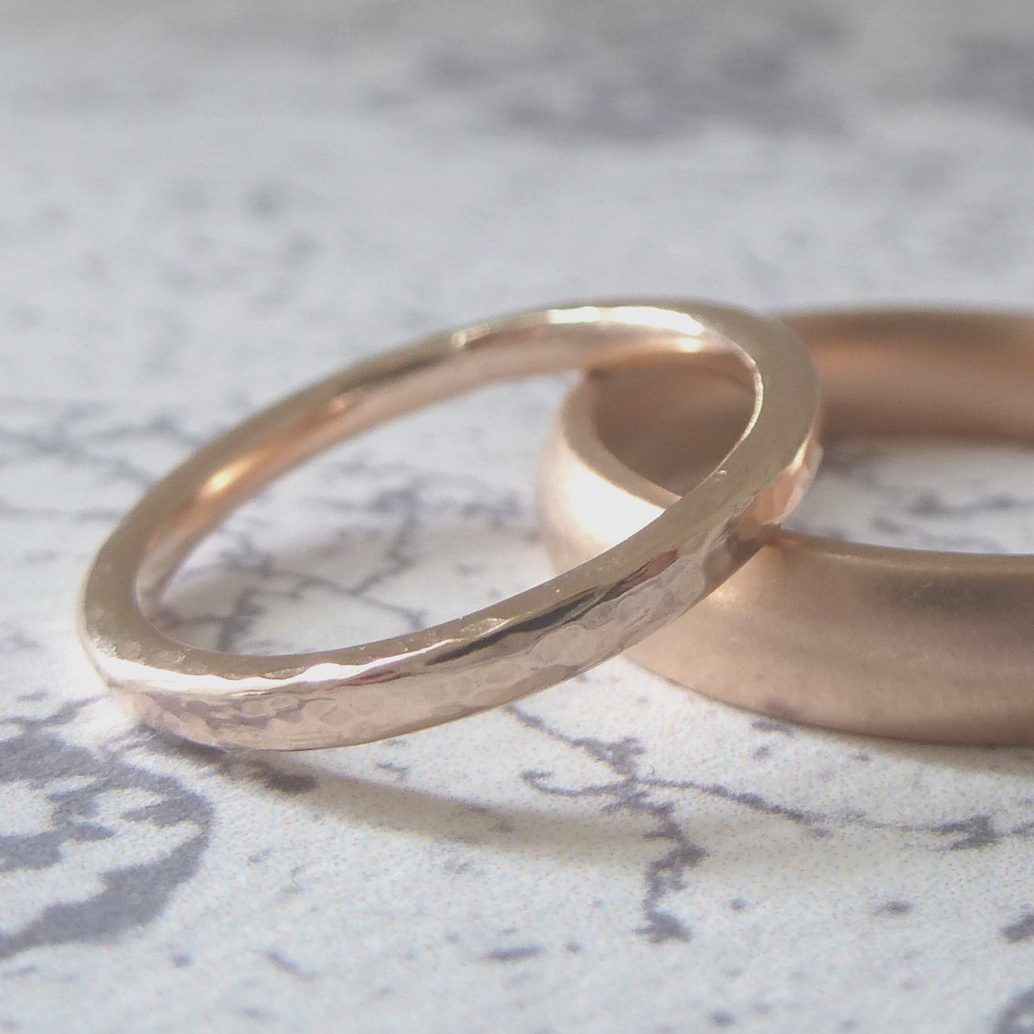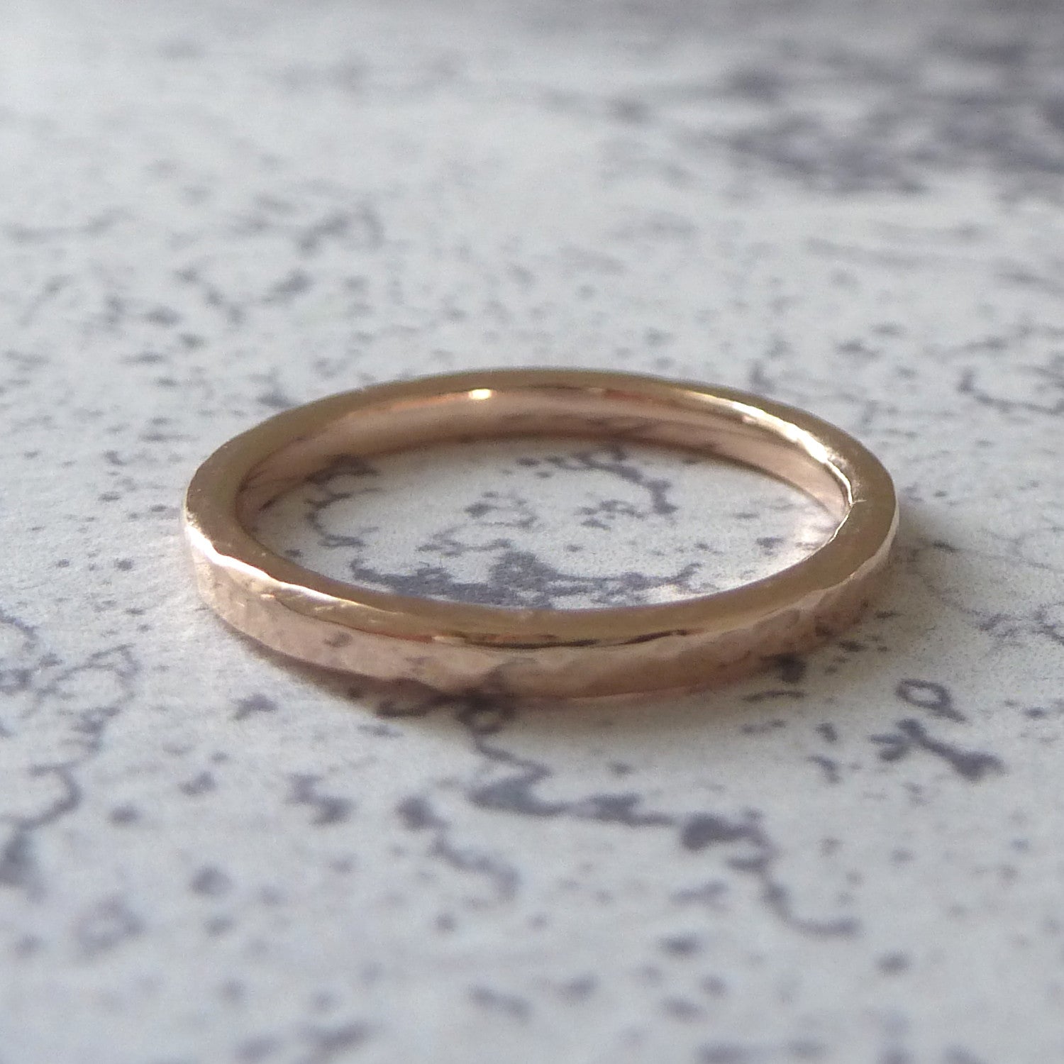 9ct Gold Ring - 2mm - rose - Hammered or Smooth