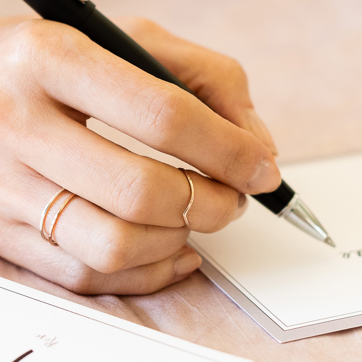 I create a teardrop out of solid sterling silver, then fold the end over to create a soft, slightly curved wishbone.