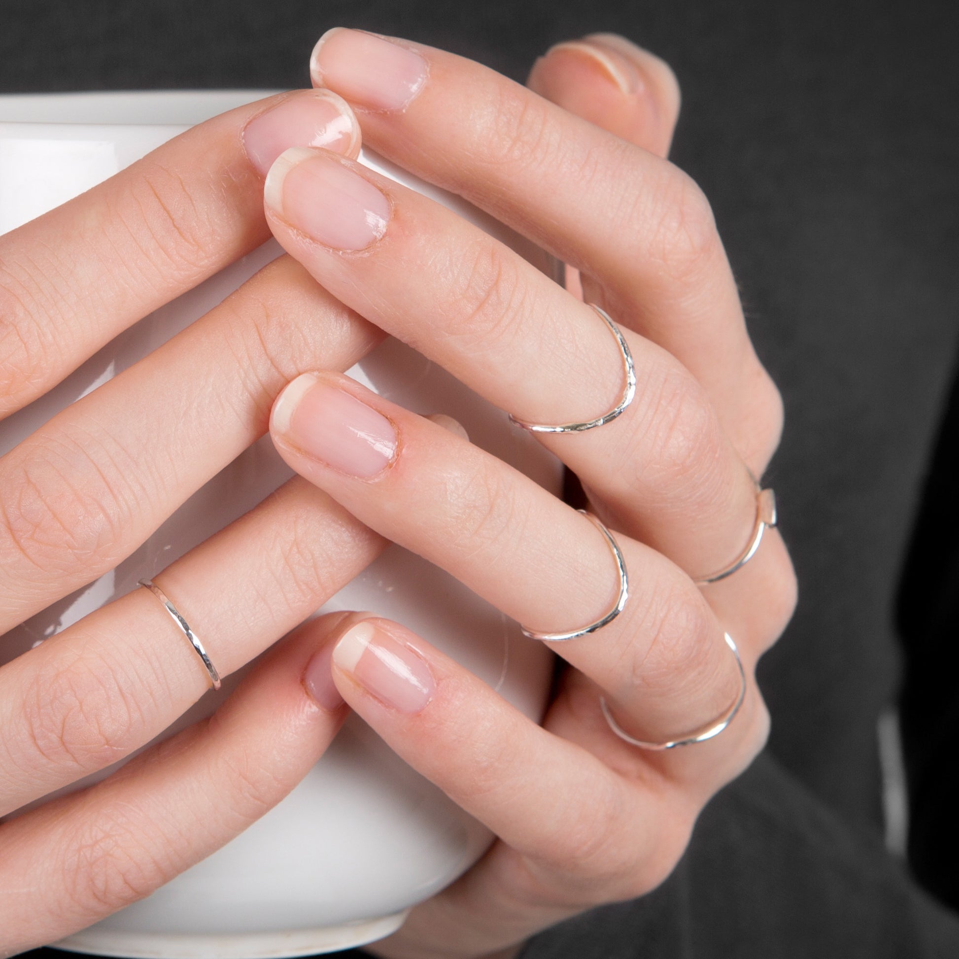 This ring is made from 1mm solid sterling silver, really slim and comfy, with a delicate hammered texture.