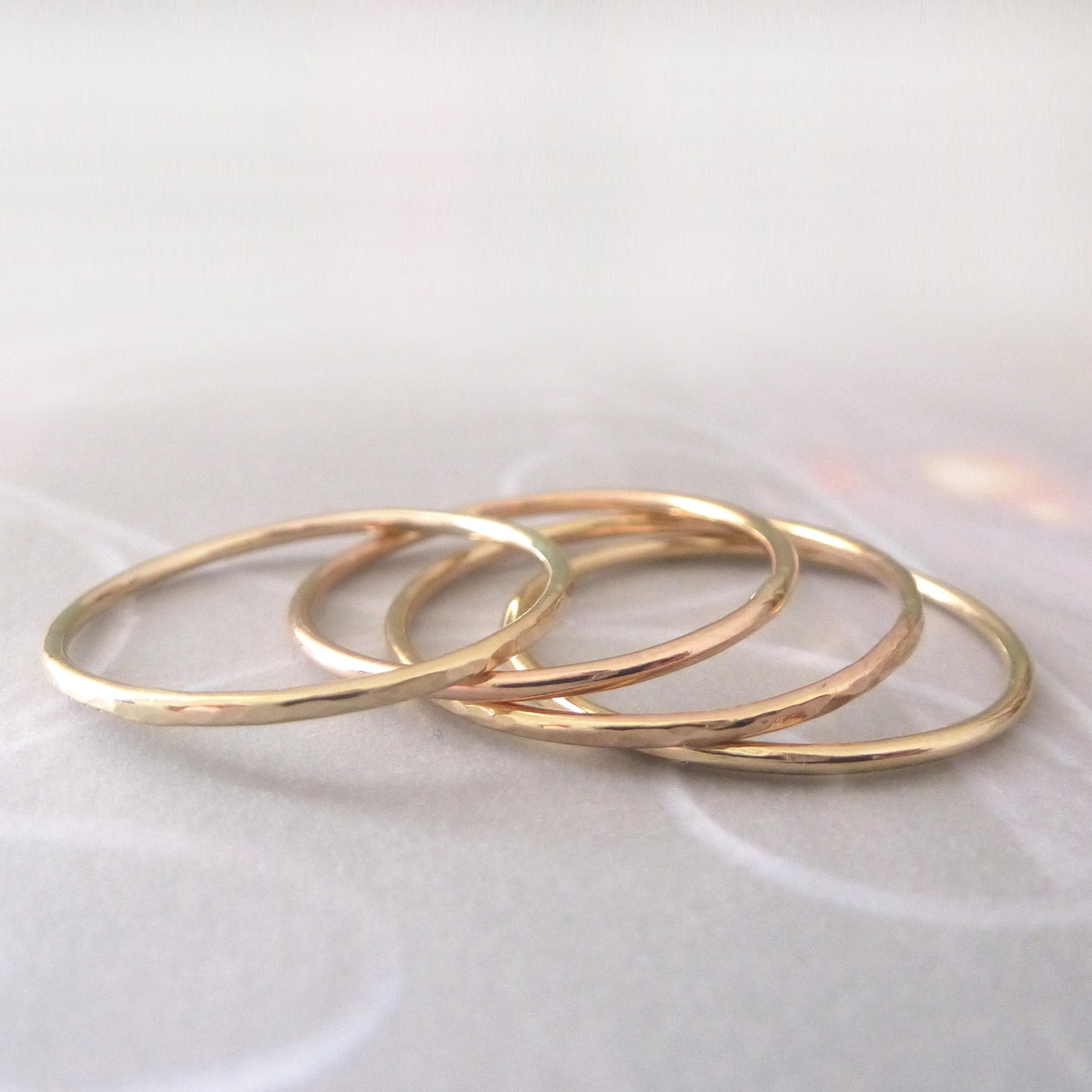 A flat band ring in solid 9ct rose gold. These skinny rings are simple yet really elegant, and perfect for combining with others. Stack up different textures and metals to create your own combination.