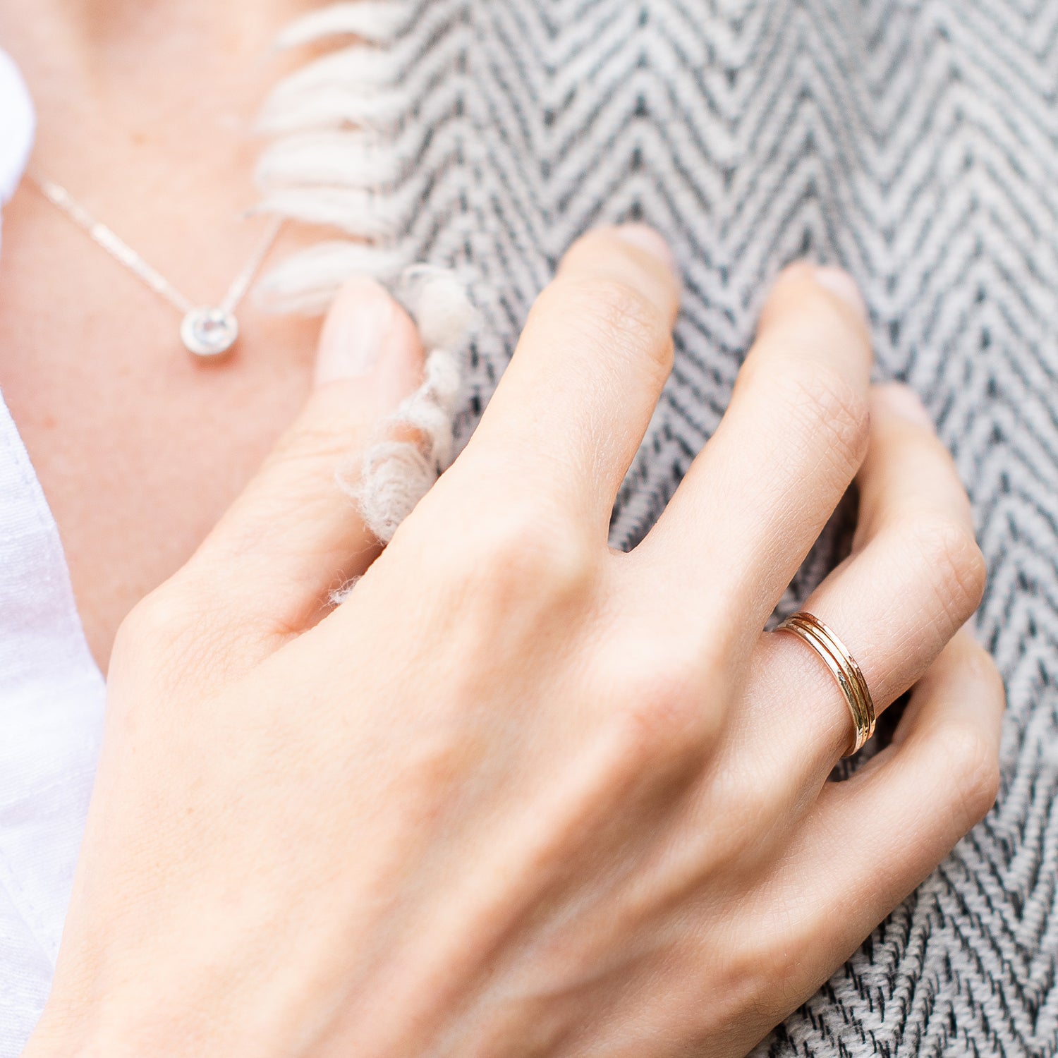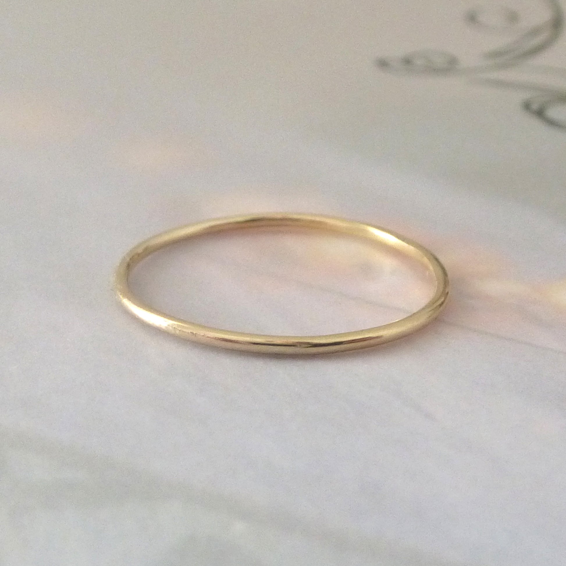 A flat band ring in solid 9ct yellow gold. These skinny rings are simple yet really elegant, and perfect for combining with others. Stack up different textures and metals to create your own combination.